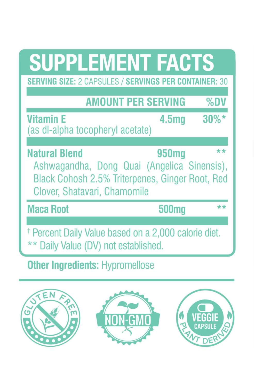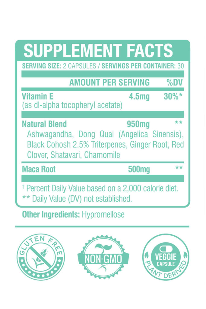 Dong Quai, Shatavari, Black Cohosh, Red Clover.